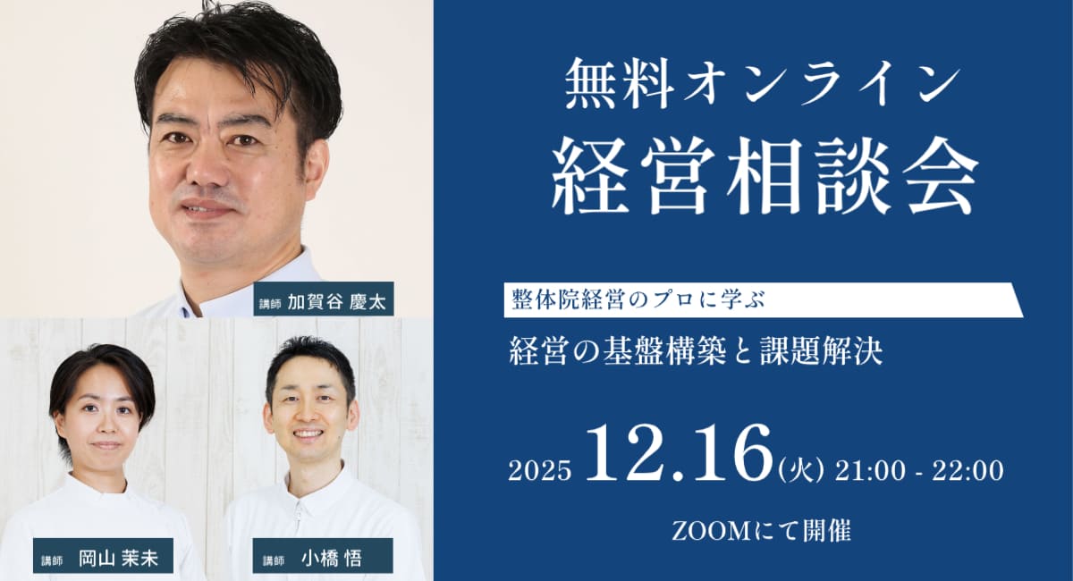 - 本相談会は、治療院経営に関する課題解決を目的としております。